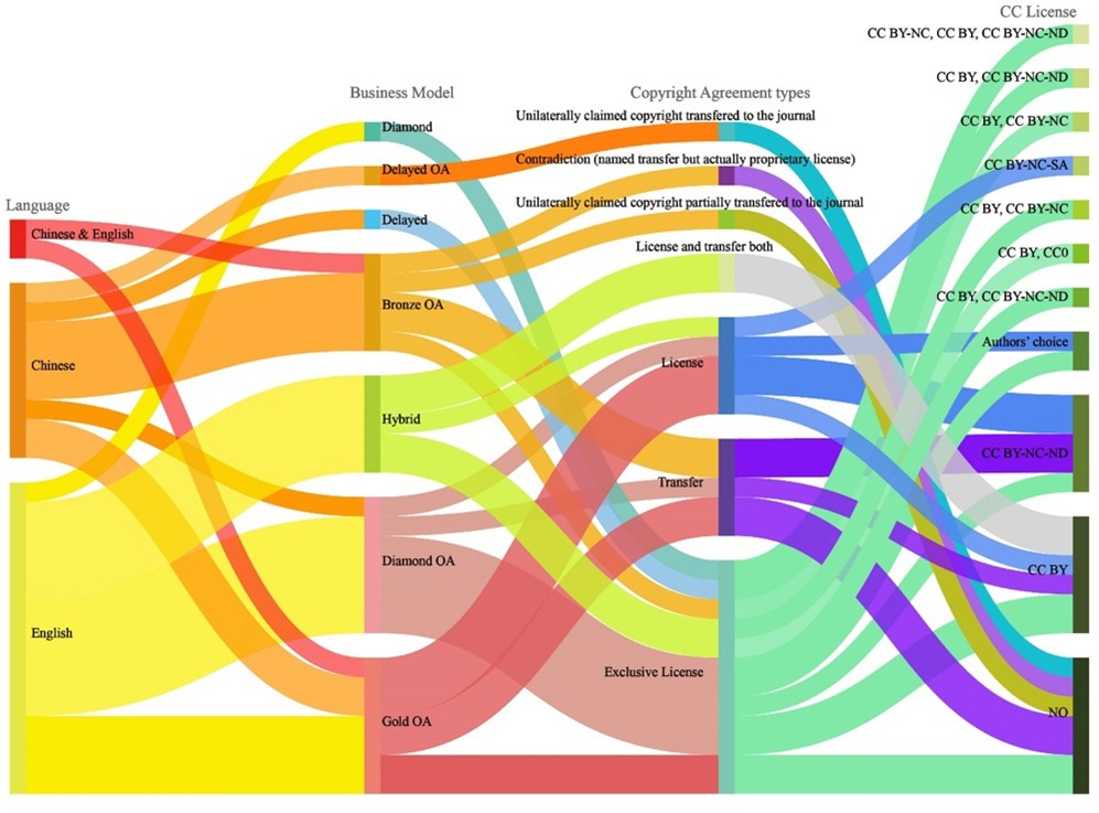 Tại Trung Quốc, các phát hiện của Wang và Ni cho thấy một mô hình đáng lo ngại: ngay cả khi một tạp chí tuyên bố sử dụng giấy phép Creative Commons (CC), các thỏa thuận với tác giả thường thiếu các điều khoản quan trọng về phát hành kỹ thuật số. Một số hợp đồng chỉ có chữ ký của tác giả mà không có chữ ký của nhà xuất bản.